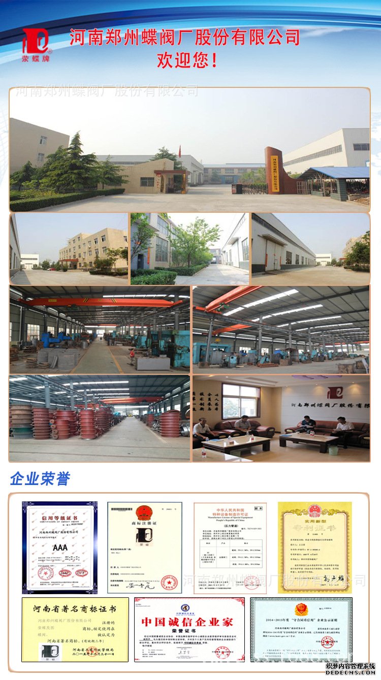 河南鄭州蝶閥廠股份有限公司(原鄭州蝶閥廠),是河南省重合同、守信用企業(yè);質量信得過企業(yè),1996年通過GB/T19001-ISO9001質量體系認證和產品質量認證,是化工部、水利部、原電力部、中石化蝶閥網員單位,產品覆蓋全國,遠銷世界各地,為了讓新老用戶放心使用我廠產品,現我公司對此工程做出鄭重承諾:質量保質期為12個月,在質量保質期期間,設備因制造質量問題發(fā)生損壞或不能正常工作,我公司免費更換。