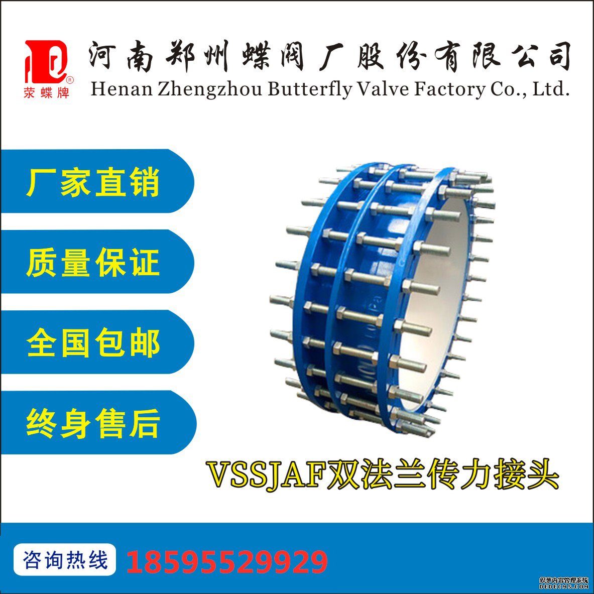 傳力接頭具體分類:按外形分為:VSSJAFG(CF)型單法蘭傳力接頭,VSSJAFG(CF)型單法蘭松套傳力接頭,VSSJAF(C2F)型雙法蘭傳力接頭,VSSJAF(C2F)型雙法蘭松套傳力接頭, VSSJAGC(CC2F)型可拆式雙法蘭松套傳力接頭。按型號分為:雙法蘭傳力接頭的型號有VSSJAF型、VSSJAFC型、VSSJA-2型、C2F型、VSSJAFG 型等等。